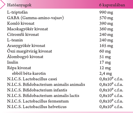 Hozzájárul az érzelmi egyensúly megtartásához, segíti az optimális relaxációt, jótékonyan hat a központi idegrendszerre, alvászavarokra. Természetes vitaminokat tartalmazó készítmény.