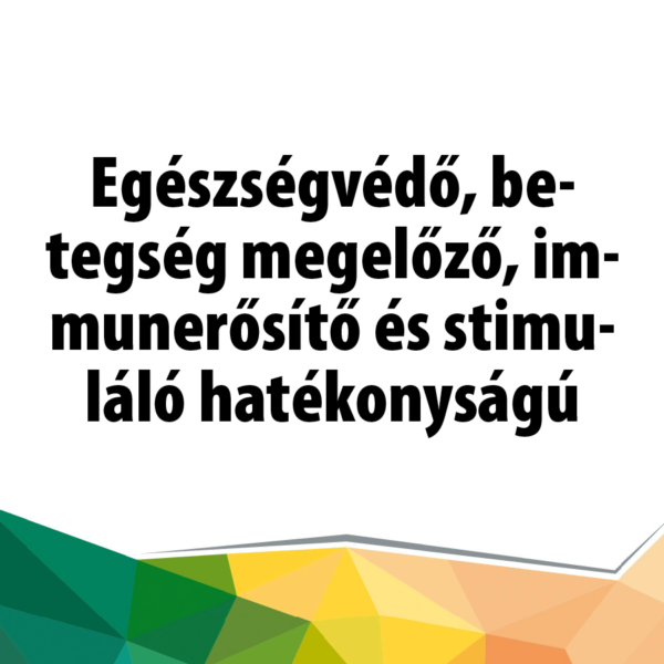 Egészségvédő, betegség megelőző, immunerősítő és stimuláló hatékonyságú. Természetes vitaminokat tartalmazó készítmény.
