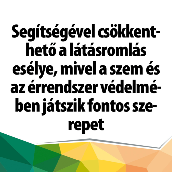Segítségével csökkenthető a látásromlás esélye, mivel a szem és az érrendszer védelmében játszik fontos szerepet. Természetes vitaminokat tartalmazó készítmény.