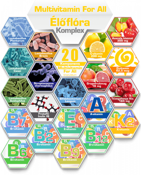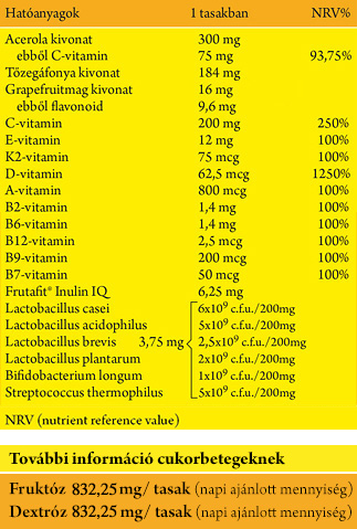 A szervezet számára szükséges vitaminok pótlását biztosítja, továbbá hozzájárul az idegrendszer és immunrendszer normál működéséhez. Természetes vitaminokat tartalmazó készítmény.