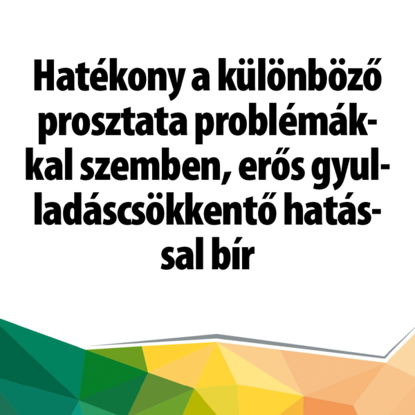 Hatékony a különböző prosztata problémákkal szemben, erős gyulladáscsökkentő hatással bír. Természetes vitaminokat tartalmazó készítmény.